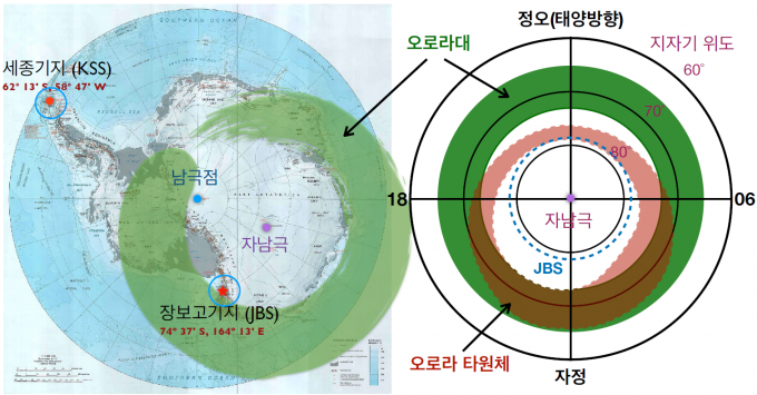 세종과학기지는 오로라가 주로 보이는 오로라대에서 멀리 있어 평소에 오로라가 잘 관측되지 않지만 이번 태양폭풍 시기에는 오로라가 선명하게 관측됐다.